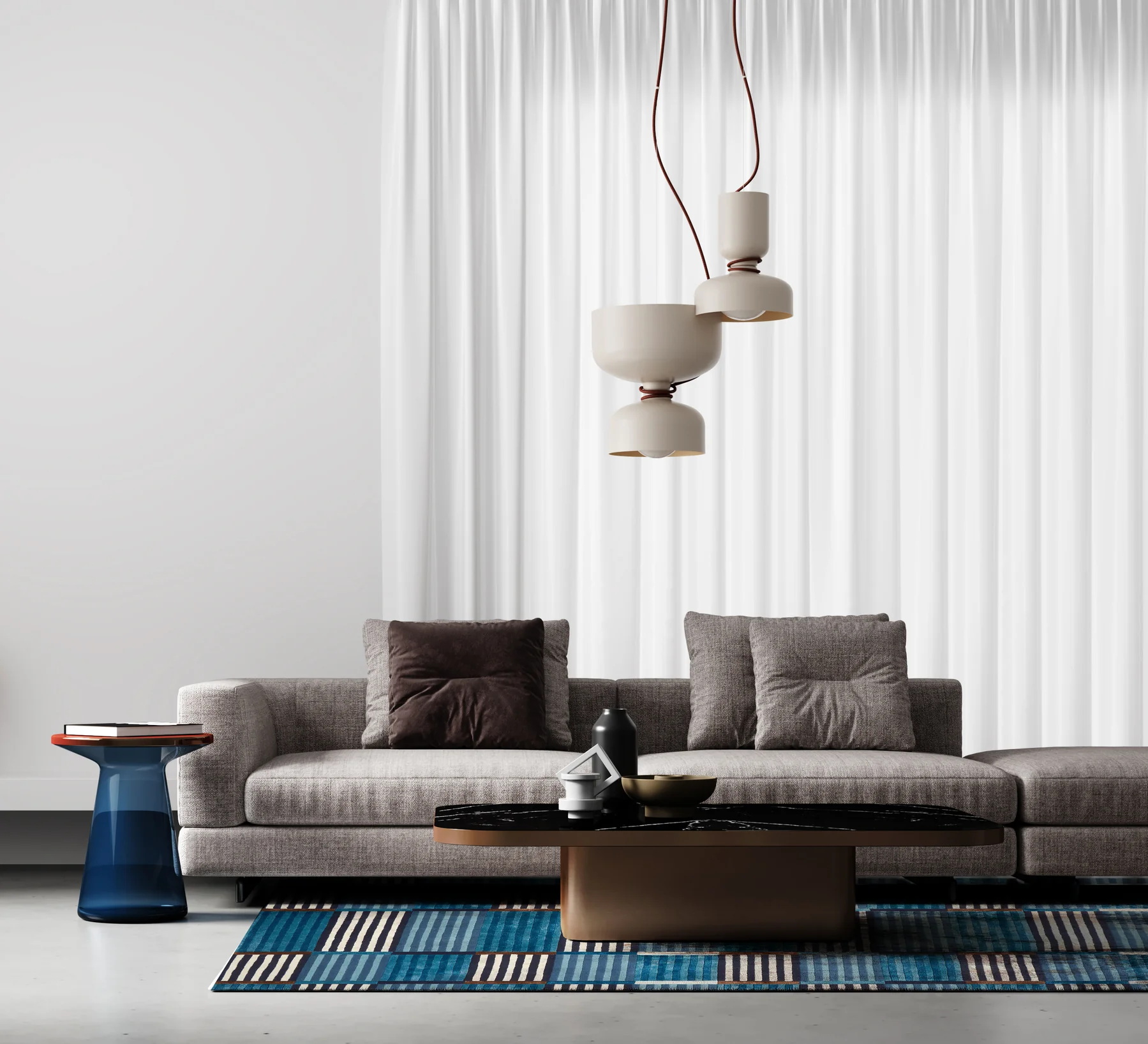 Admiral Blue vaip toob interjööri julget ja modernset stiili tänu dünaamilisele triibulisele disainile sügavates sinistes toonides, mida täiendavad pruunid ja kreemjad detailid. Geomeetriline muster muudab selle silmapaistvaks elemendiks kaasaegses sisekujunduses.