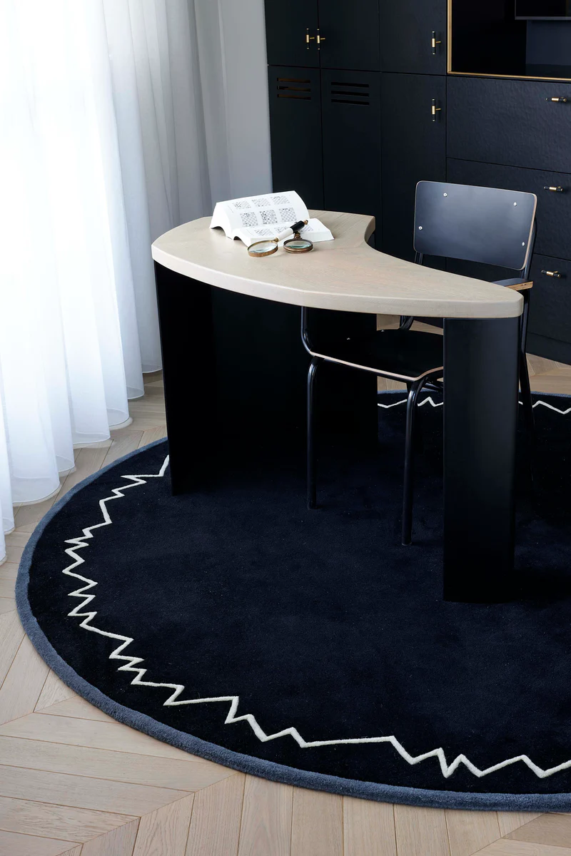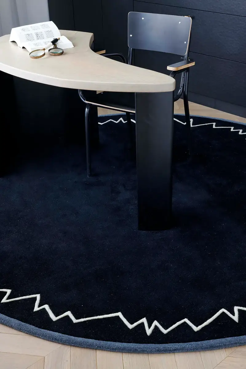 Must Baikal vaip esitleb ennast kui meistriteos, mis on uuesti loodud Andrée Putmani 1987. aasta legendaarsetest kujundustest, sümboliseerides muljetavaldavat pärandi ja kaasaegsuse liitu. Alguses loodud selle ikoonilise disainifiguuri tööruumide jaoks Saint Paulis, on see mudel ajaproovile vastu pidanud, säilitades oma teedrajava ilme ja ajatult šiki stiili. Hetkel on Baikali vaip taas välja antud, järgides Andrée Putmani autentsust ja esialgseid kavatsusi. Vaip eristub oma käsitsi kootud struktuuri poolest, peegeldades kõrgeimat käsitööoskust ja kvaliteeti.