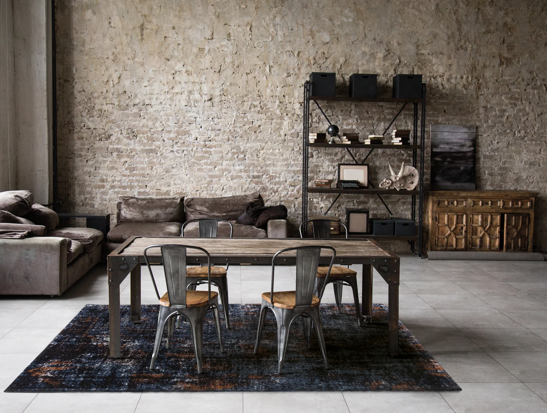 Flame Rusty Blue vaip ühendab sügavad sinised toonid sooja roostepruuni aktsendiga, luues julge ja elegantse sisustuselemendi. Abstraktne muster meenutab kulunud tekstuuri, sobides suurepäraselt modernsesse lofti või industriaalstiilis interjööri.