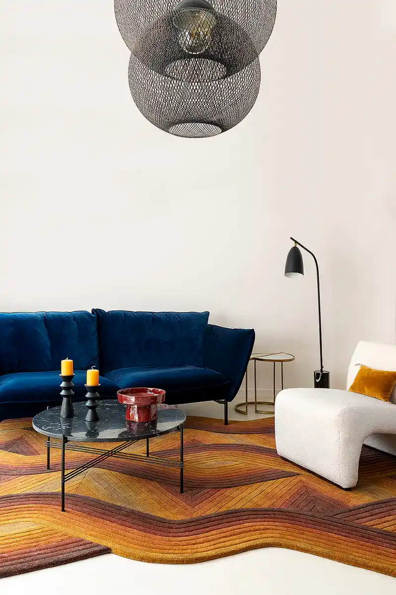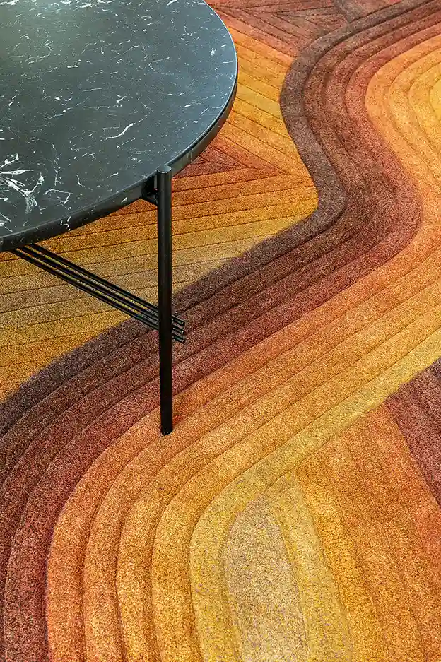 Flow Ocre mudel, mille on kujundanud Samuel Acoceberry, on käsitsi tuueldud villane okra vaip. See vaip ei vaja karjumist, et end märkama panna. See tõmbab tähelepanu oma ainulaadse kuju ja mustri peene tasakaalu kaudu. Iga villane riba on hoolikalt kootud, luues gradatsiooni, mis toob esile vaiba kõverad ja jooned. Pehmed kõverad kontrasteeruvad rangema zikk-zakk-struktuuriga, tuues visuaalset dünaamikat ilma ruumi domineerimata. See ei ole vaip, mis püüab oma kohalolu peale sundida, kuid oskab end hinnata just sellisena, nagu ta on: hästi läbi mõeldud ja kvaliteetselt valmistatud ese.