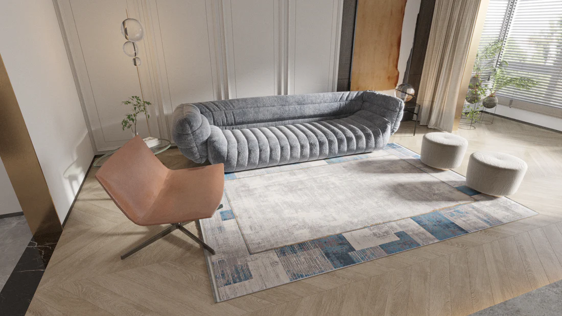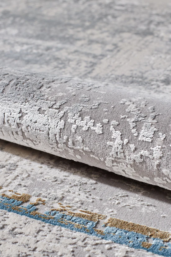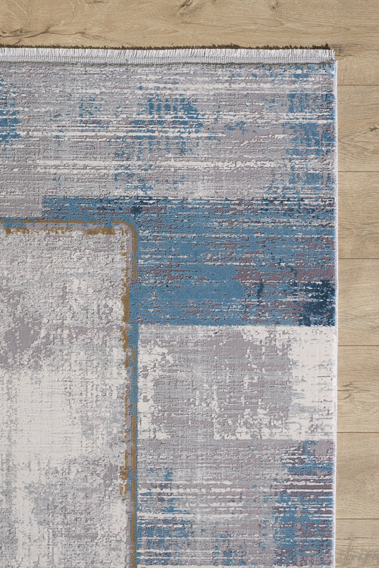 See vaip, mis koosneb harmoonilistest jahedatest sinistest ja õrnadest hallidest toonidest, tabab kaasaegse abstraktse kunsti olemust. Ristkülikukujuliste plokkide ja joonte läbimõeldud paigutus kutsub esile arhitektuurilise tasakaalu tunde, tuues ruumi struktureeritud, kuid õhulise tunde. Keskosa heledam toon pakub kontrastset lõuendit, mis on valmis täiendama ja tõstma ümbritsevat sisekujundust. Tugev konstruktsioon lubab vastupidavust ja külluslik tekstuur jalgade all pakub käegakatsutavat luksust, muutes selle igapäevaseks eluks funktsionaalseks kunstiteoseks.