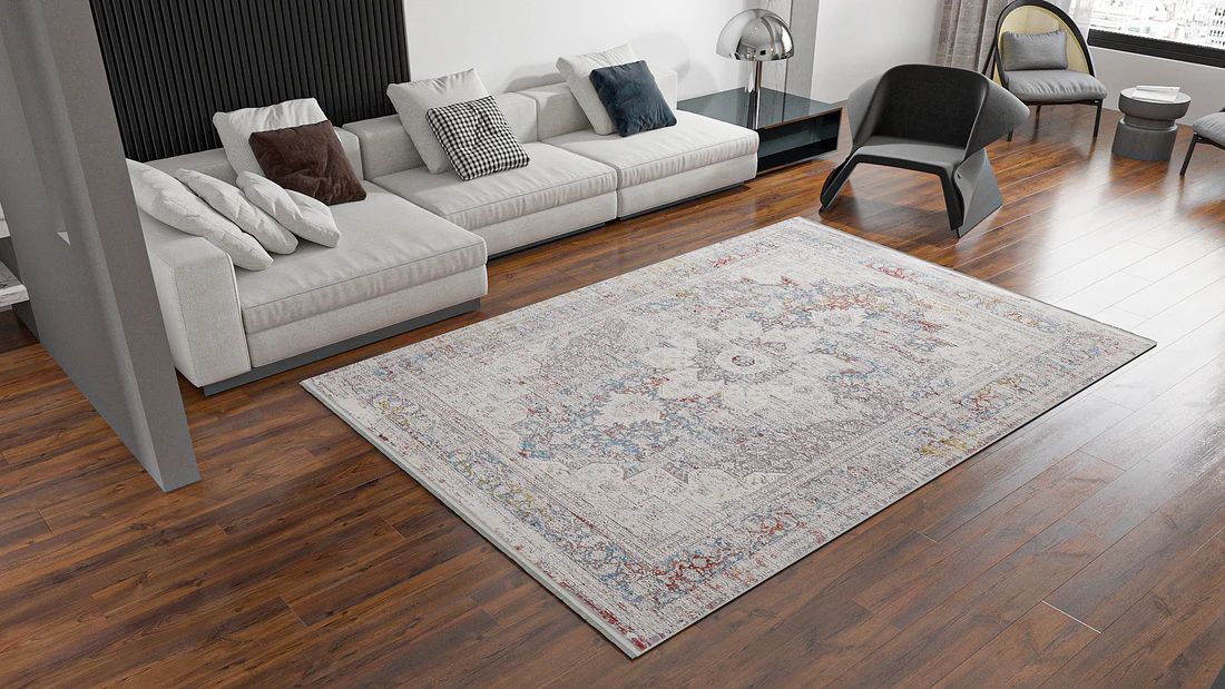 See kõrgkvaliteetne vaip õhkab antiikse pärandvara tuhmunud elegantsi, mille keskne medaljon ja nurgakaunistused on õrnades kreemide ja hallide toonides, mida täiendavad kuldse ja summutatud sinise varjundid. Ajalooga tekstiile meenutav disain toob ruumi ajaloohõngu ja vaikset peenust.