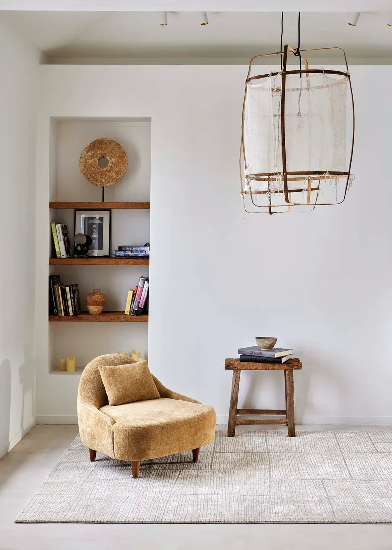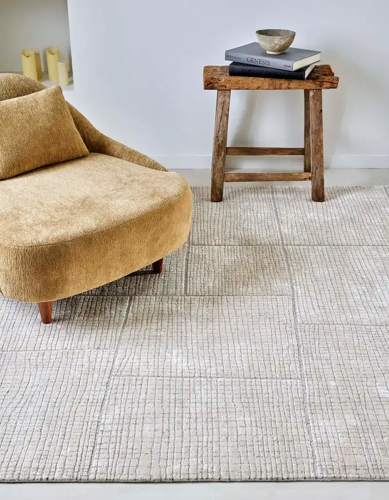 Opus vaip, mis ühendab endas tencelit ja villa rahustavas beežis toonis, toob meelde vaiksed riisipõllud oma ebakorrapäraste ja harmooniliste niisutuskanalitega. See teos, millel on marmorjas muster ja sametine tekstuur, esindab minimalistliku elegantsi tippu, pakkudes nii visuaalset kui ka taktiilset rikkust.