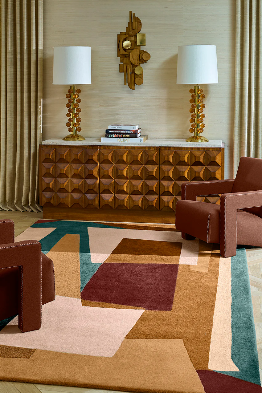 Käsitsioonilise tufting’u tehniline oskusteave saavutab siin oma tipu. Meie erakordsed käsitöölised töötlevad iga värvitud ala märkimisväärse täpsusega, austades erinevaid tihedusi, et luua reljeefefekte, mis äratavad geomeetrilise teose ellu. See saavutus nõuab enam kui viie nädala pikkust spetsialiseeritud tööd.