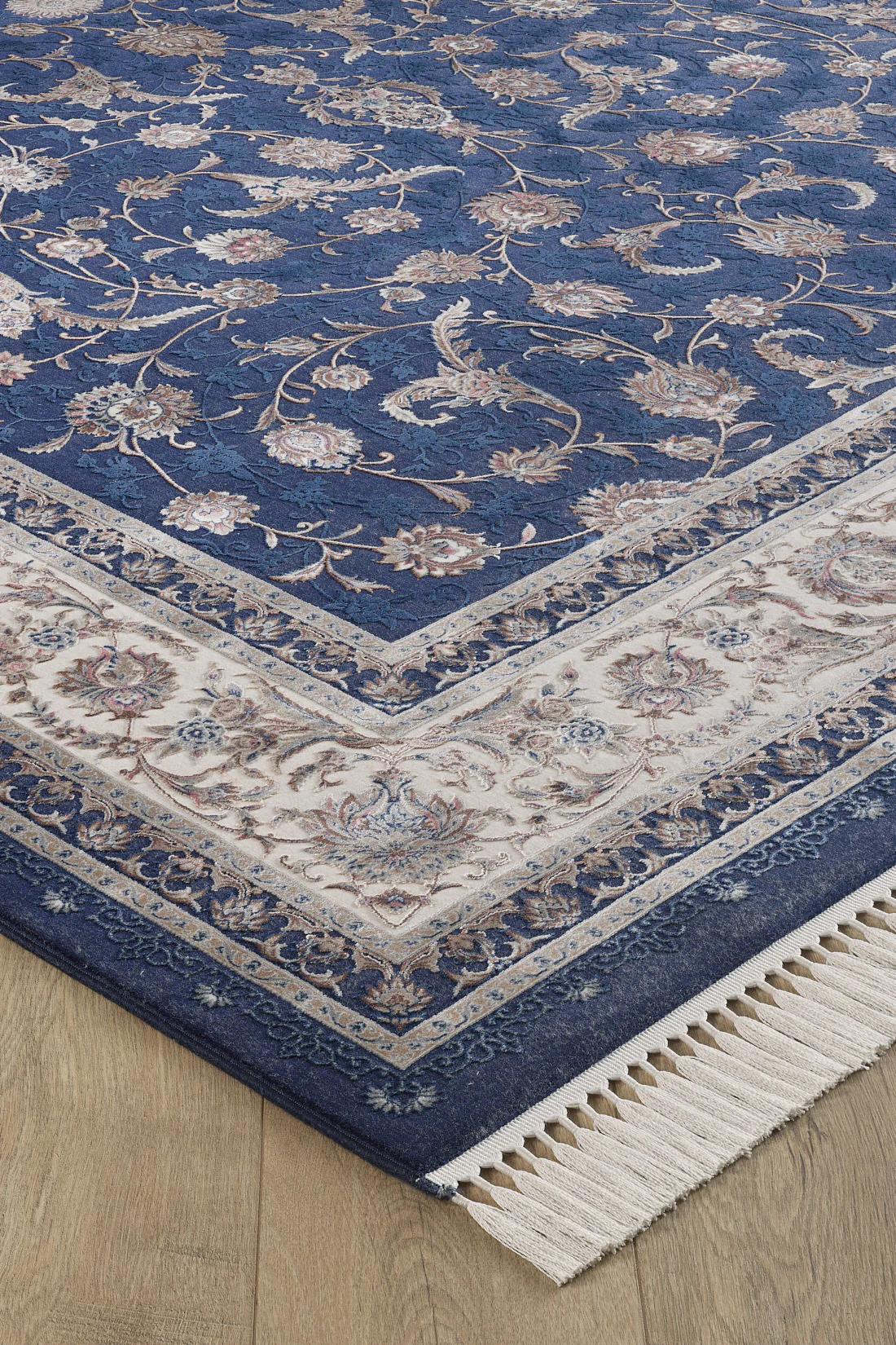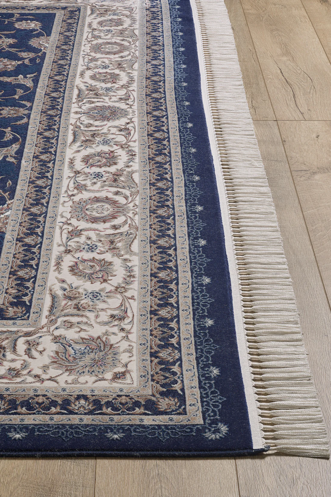See rikkalikus mereväetoonis vaip kehastab öö keerulist võlu. Lillemotiivid, mis on esile tõstetud kontrastse beežiga ja raamitud halli vihjetega, toovad esile kujunduse, mis on ühtaegu julge ja läbimõeldud. Iga kudumine annab luksusliku tunde, tuues esile luksusliku värvisügavuse ja keerukad mustrid, mis muudavad selle vaiba silmapaistvaks tükiks, ühendades uhke tekstuuri rikkaliku ja dramaatilise paletiga.