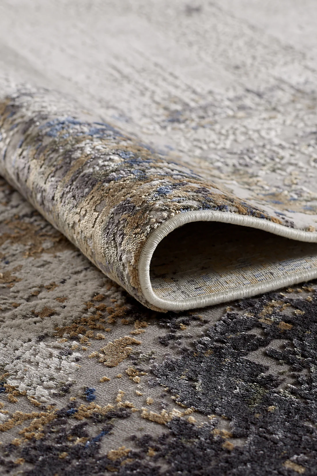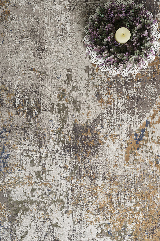 Selle ainulaadse kulunud disainiga vaip kiirgab dünaamilist ja kunstilist väljendust, sobides ideaalselt igasse ruumi. Selle pind meenutab abstraktset maali, kus värvide rikkalik, mitmekihiline mäng moodustab lööke ja pritsmeid. See pilkupüüdev element on loodud nii vastupidavuse kui ka mugavuse jaoks, ühendades kõrgekvaliteedilise käsitöö praktilisuse ja kunstilise veetlusega.