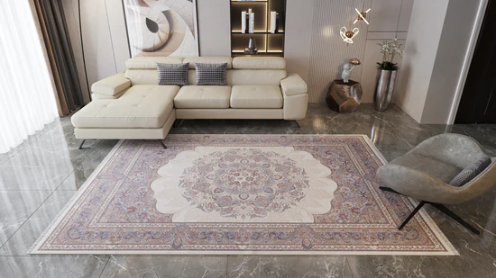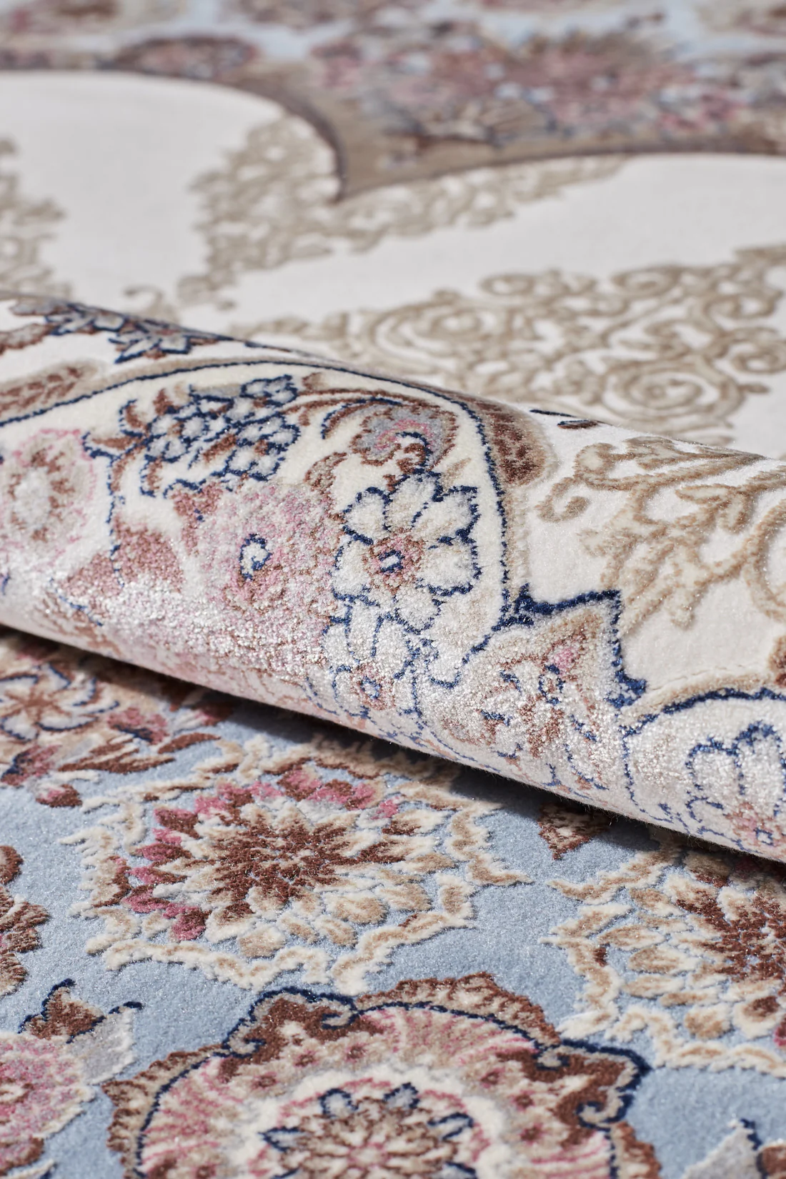 See vaip õhkab ajatust elegantsi oma keeruka lillemedaljoniga, mis on ümbritsetud uhkete äärtega, kreemika beeži tausta ja pehmete siniste ja roosade toonidega. Hoolikalt valmistatud kõrge tihedusega kude tagab küllusliku tunde, olles nii luksuslik katsuda kui ka silmale meeldiv. Rafineeritud värvipalett ja detailne muster muudavad selle tüki, mis täiustab iga ruumi atmosfääri graatsiliselt ja stiilselt.